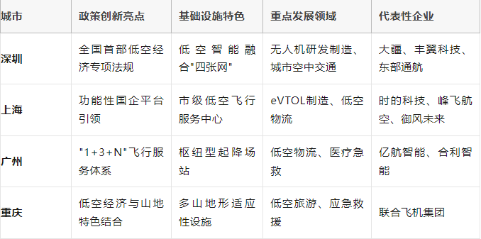 在国家政策框架下,各地方政府结合自身优势,积极探索低空经济发展的特色路径,形成了百花齐放的区域发展格局。2024-2025年间,多地出台专项法规和政策,构建了各具特色的低空经济生态体系,为全国范围的制度创新提供了丰富的地方实践。