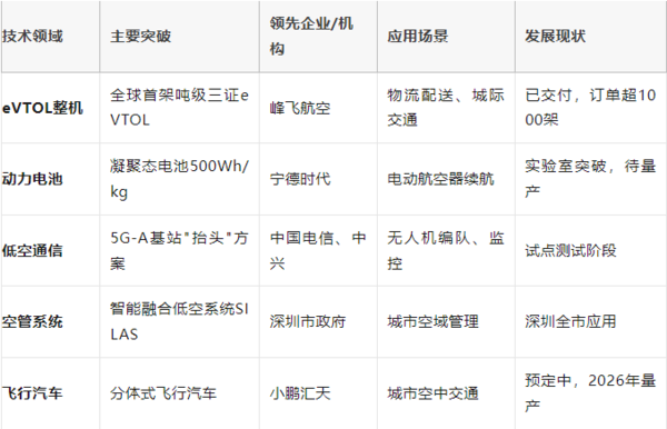 在政策红利的催化下,中国低空经济领域正迎来一系列关键技术突破,从飞行器制造到空域管理系统,从动力电池到通信导航,技术创新成为驱动产业发展的核心引擎。这些技术突破不仅解决了低空经济发展的瓶颈问题,更在全球范围内形成了中国企业的竞争优势。