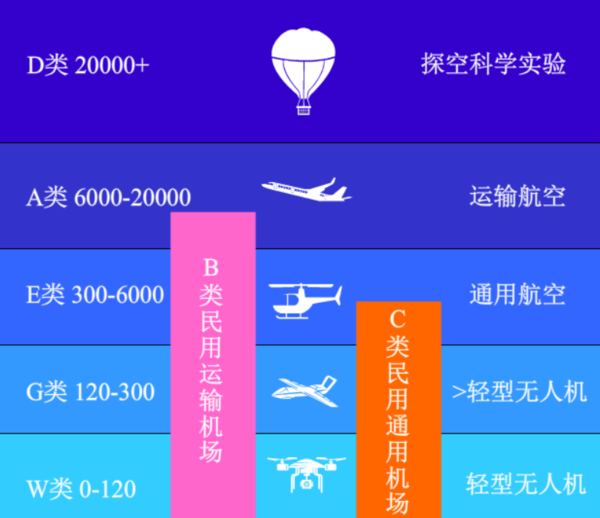 W类 真高120米以下主要用于轻型无人机的飞行。