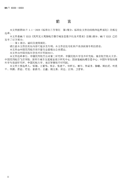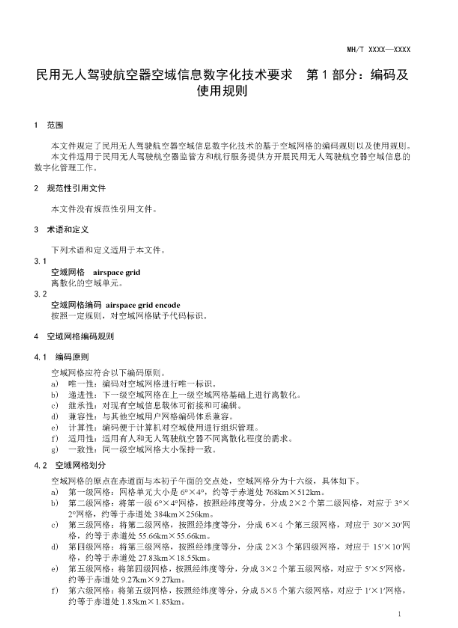 1.《民用无人驾驶航空器空域信息数字化技术要求 第1部分:编码及使用规则(征求意见稿)》: