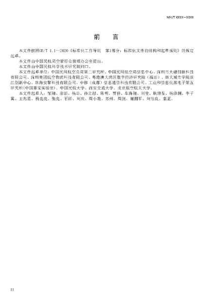 其中,《民用无人驾驶航空器空域信息数字化技术要求 第1部分:编码及使用规则》这一标准项目由民航局空管办提出,牵头起草单位为民航二所。主要起草单位包括民航二所、航科院、南京航空航天大学、中国民用航空飞行学院、深圳市城市交通规划设计研究中心、国家基础地理信息中心、中国科学院地理科学与资源研究所、中国民航大学、南京智慧航空研究院。