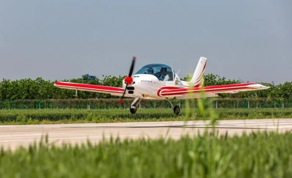 4月25日,在安阳永和机场,飞行学员在教练的指导下驾驶轻型运动类固定翼飞机进行飞行训练。